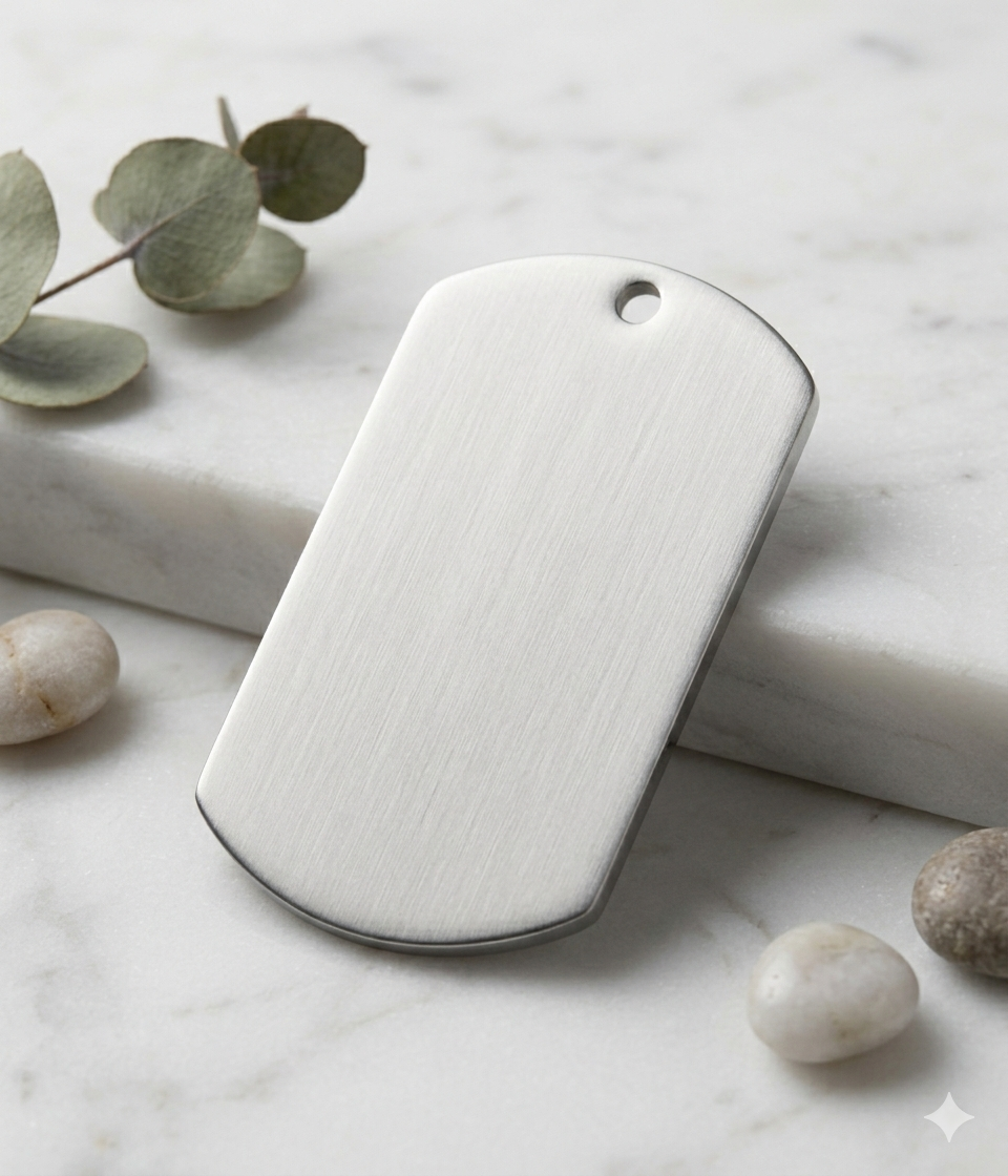 Una pieza limpia y versátil con estética moderna. La placa minimal es perfecta para llevar sola o personalizar (según configuración). Su forma rectangular con bordes suavizados aporta carácter sin perder elegancia.