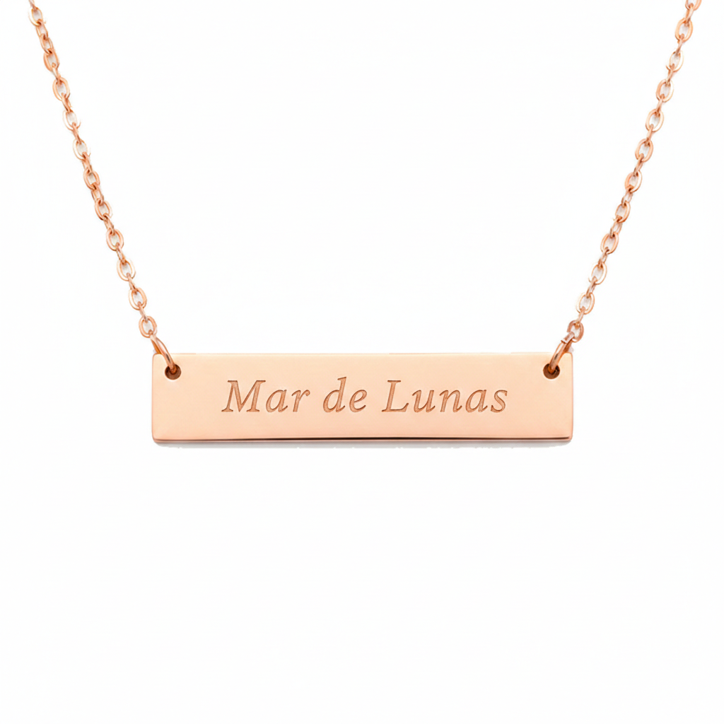 Placa rectangular minimalista, perfecta para un look limpio y elegante. Acero inoxidable con acabado en color Oro / Plata / Bronce.